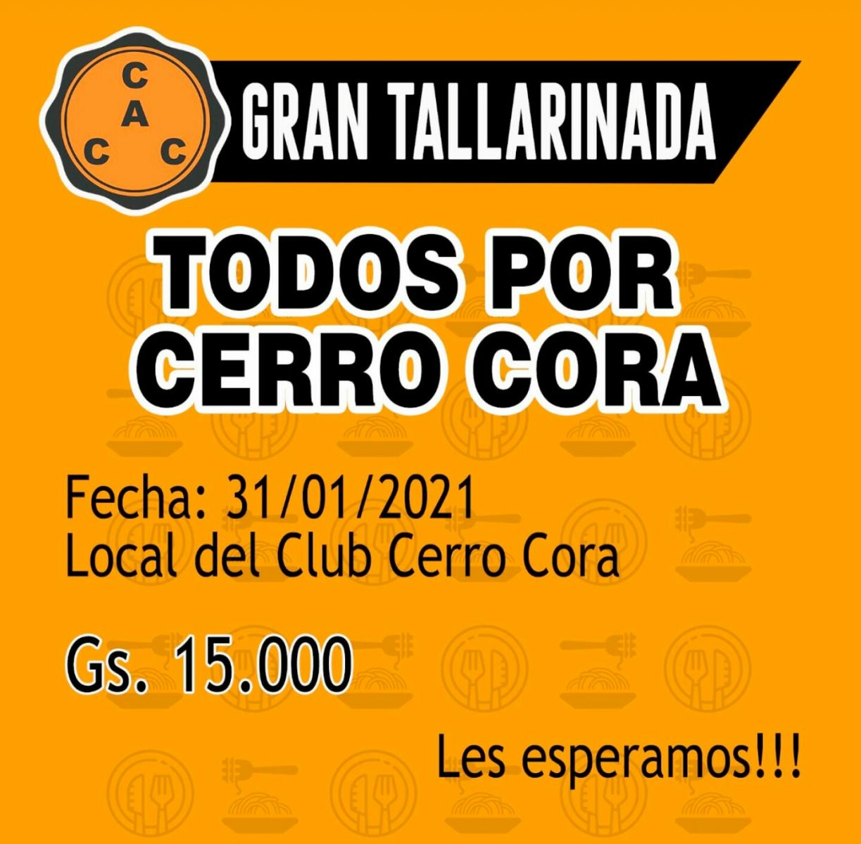 La Comisión Directiva del Club Atlético Cerro Corá de Lambaré organiza una tallarinada este domingo 31 de enero de 2021, con el fin de recaudar fondos para mejoras en el club.